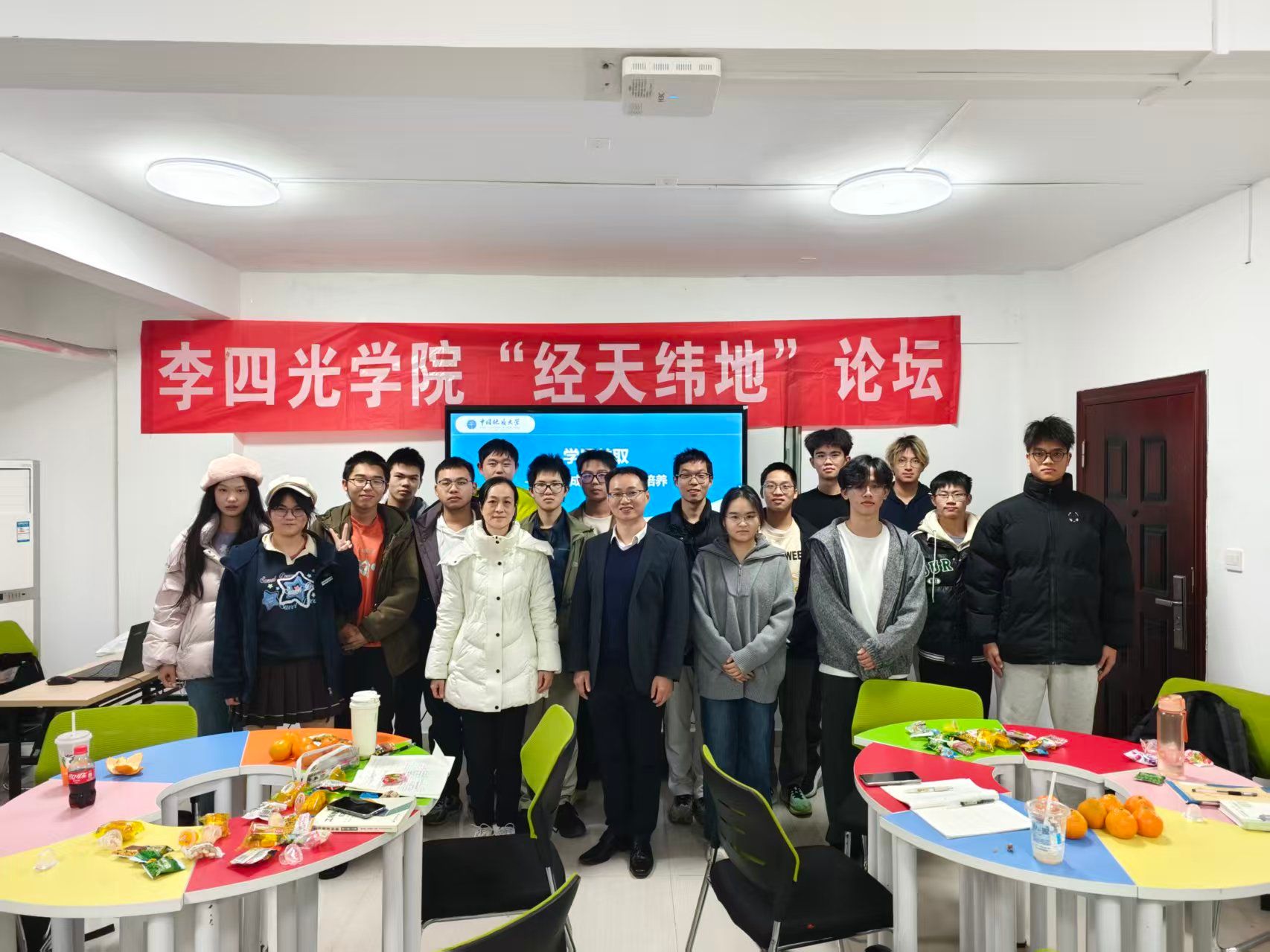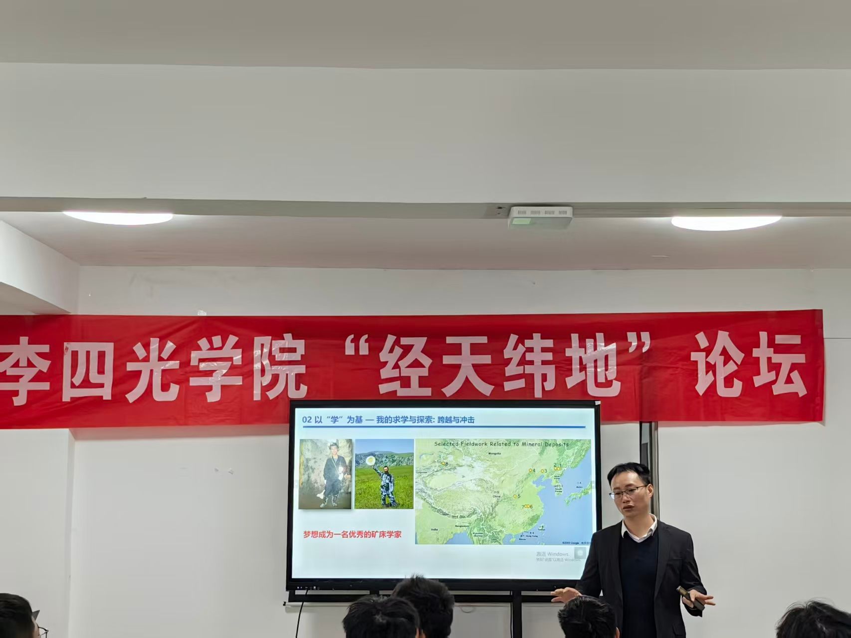 (通讯员:蔡新淼)为助力学子明确学术方向、拓宽成长视野,2025年11月27日14:30,李四光学院“经天纬地”论坛总第007期在西区6栋一站式服务中心108室成功举办。本期论坛特邀中国地质大学(武汉)地球科学学院汪在聪教授主讲,以“学思并进:留学成长路与学生培养”为主题,为在场学子带来一场兼具学术深度与人生温度的分享。